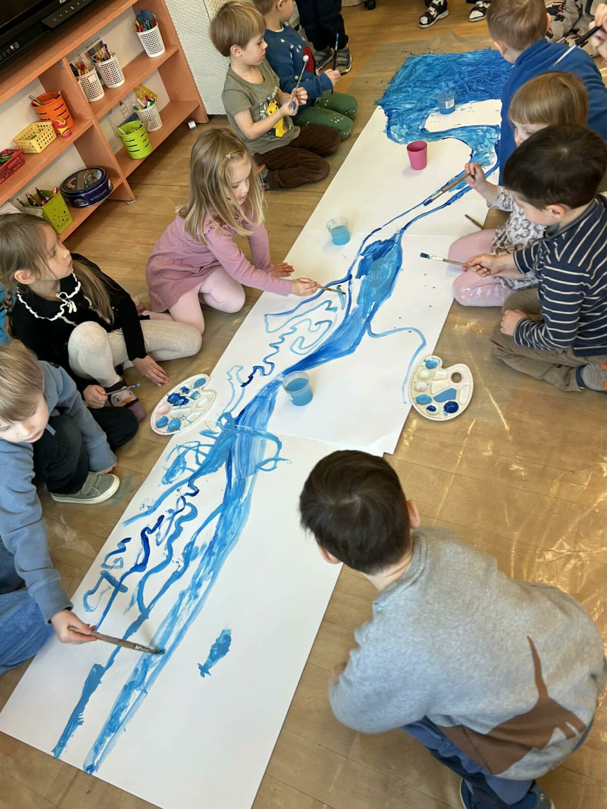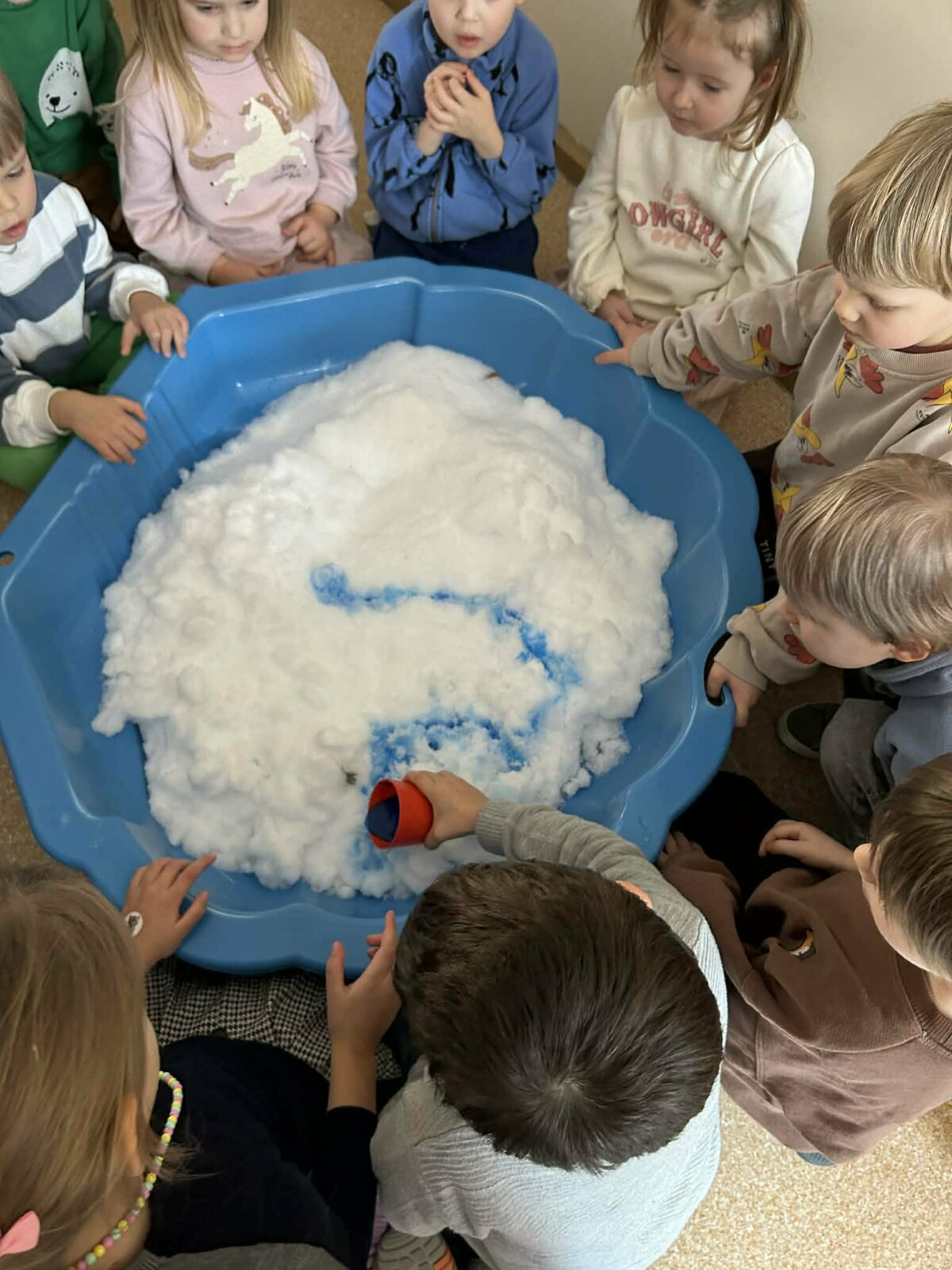 🌊❄️ ,,Varpelio" ir ,,Saulutės" grupių vaikai vykdė projektą tema „Upių žemėlapis“. Vienos iš patyriminių veiklų metu vaikai tyrinėjo sniegą ir kūrė „ledo upes“ 🧊💙 Naudodami dažus 🎨 ir pipetes, jie stebėjo, kaip sniegas keičiasi, tirpsta, susilieja spalvos 🌈. Su padidinamuoju stiklu 🔍 vaikai atidžiai tyrinėjo sniego struktūrą, pastebėjo smulkias detales ir vykstančius pokyčius. Dirbdami mažomis grupelėmis, vaikai mokėsi dalintis priemonėmis, tartis tarpusavyje ir padėti vieni kitiems 🤝💬 Veikla skatino smalsumą, kūrybiškumą, bendradarbiavimo įgūdžius bei pažinimą per patirtį ✨ Mokymasis, kuris įkvepia ir džiugina! 💙